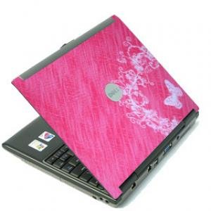 Cheap Dell Latitude D410 Laptop with Pink Butterfly Vinyl Cover * 40Gb Hard Drive * 1 Gb Memory * Windows XP Pro * Antivirus * Office * Wireless * 3 Month Warranty