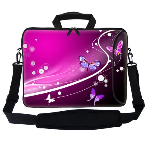 What's new on 17 17.3 inch Neoprene Laptop Carrying Bag Sleeve Case w. Accessories Pocket, Soft Carrying Handle & Removable Shoulder Strap Fits 17" 17.3" or Smaller Size Laptop - Pink Butterfly Design - See Details :