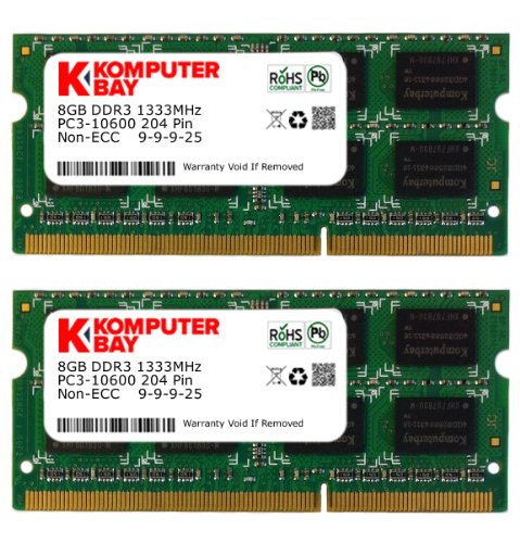 Komputerbay 16GB (2x 8GB) PC3-10600 10666 1333MHz SODIMM 204-Pin Laptop Memory 9-9-9-24 for PC only - not MAC - While at first glance, it may be in your best interest to shop around. Know that when you purchase RAM from Komputerbay, you're getting Grade-A brand name computer memory. Cheap computer memory, while possibly being compatible, can cause system crashes, error codes in your computer, and even damage to your motherboard! Other sellers may offer you similar looking products for a few cents or a dollar less, but here's the scoop on why: they sell cheap-grade memory and they don't test the modules be