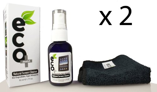 Screen Cleaner KIT X 2 + Extra Fine Microfiber Towel + All Natural + MADE IN UK, GREEN PRODUCT, NO AMMONIA AND ALCOHOL, Cleans All Dusts and stains, Best for Laptop, iPhone, iPad, Computers, Touch screens etc. (2 X 50Ml Screen Cleaner) - All Natural, NO Chemicals, NO ACIDS, Cleans All Dusts and stains, Free of Alcoholic substances, Best for iPhone, iPad, Computers, Laptop, Touch screens etc. Eco Moist screen cleaner KIT. It is made from 100% natural herbal constituents, refined on the basis of finest herbal veins theory. Free of acids and alcoholic substances. Direction of use: Simply spray on the microfibre towel (included in the box) and gently wipe the existing dust and stain areas of the screen.